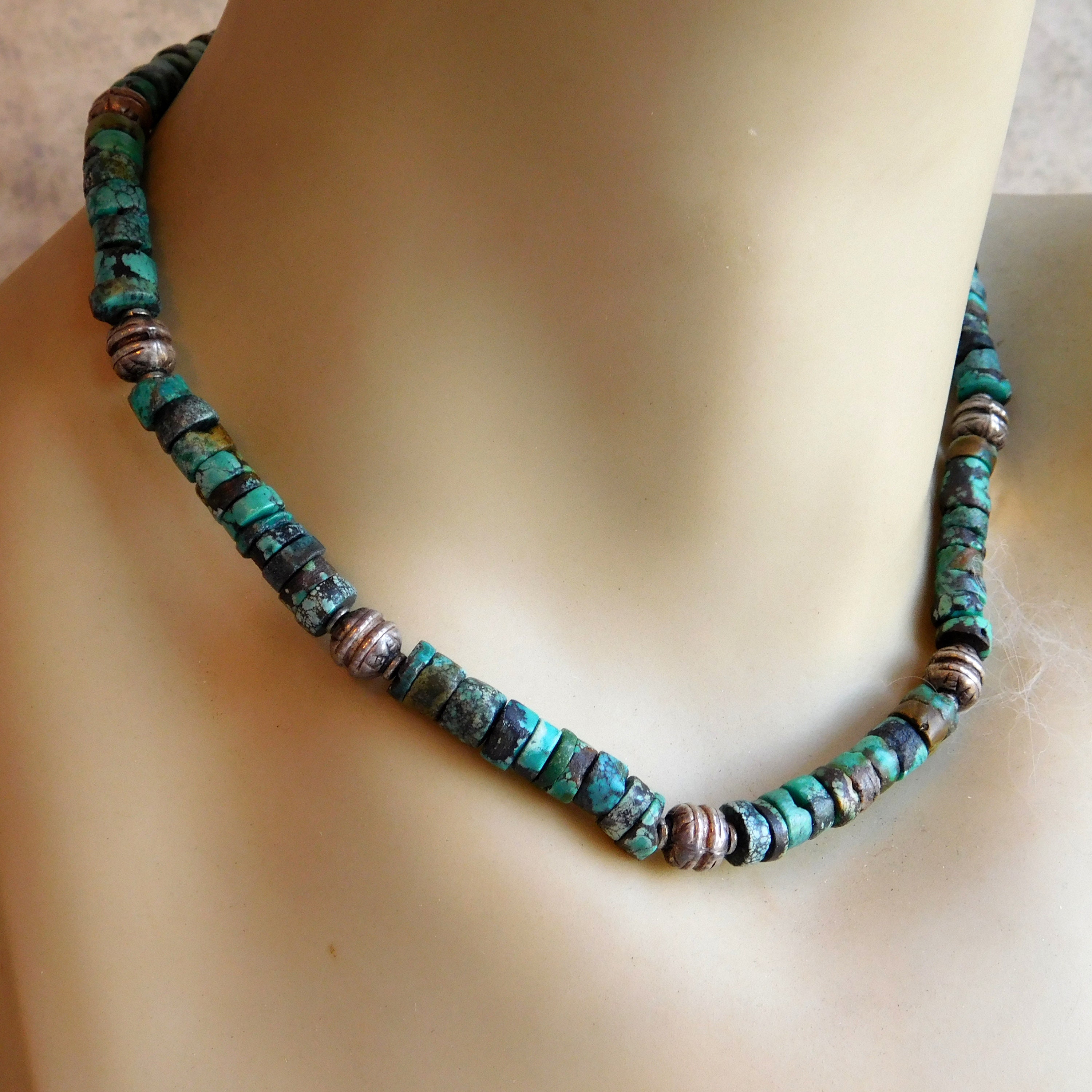Vintage Turquoise Heishi Bead Necklace W Sterling Silver Etsy Ireland